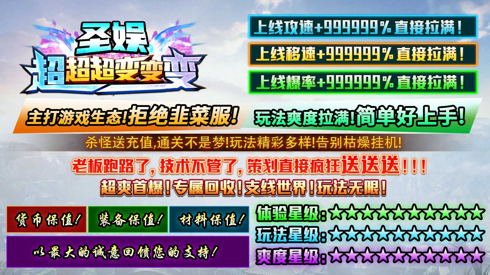 圣娱超超超变变变传奇是一款颠覆传统设定的无限进化传奇手游,以“万物皆可变”为核心设计理念,重构战法道职业体系、装备属性与地图生态。玩家将在动态演化的沙城中体验每秒万次属性迭代,通过触控操作、神经同步进化与混沌规则挑战,感受无边界成长的硬核传奇体验。游戏采用自研“混沌引擎”,实现技能形态、怪物特性与地形结构的实时突变,打造移动端传奇的终极超变形态。