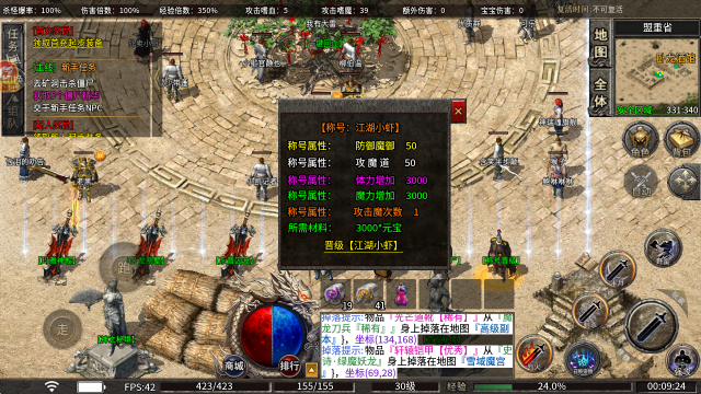 称号升级系统:小号使用元宝就能提升称号等级,每个等级都能带来丰厚的攻魔道属性加成。