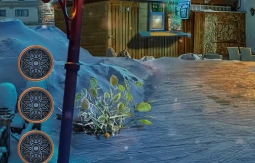 旁边有一家咖啡店,热咖啡能帮我们解冻,不过得花3个金币才行。现在咱们身上的金币不够,先去调查左下角的花丛吧。在花丛下面能找到一枚藏着的金币,这样就只差一枚金币了。