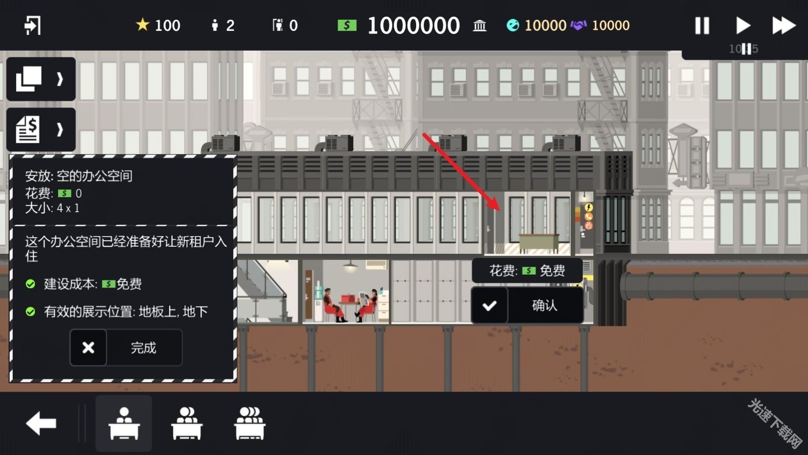 3、首先我们尝试打造一间办公室,选好合适的位置后点击确认就行。