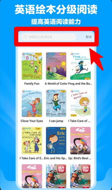 3、英语绘本具备搜索功能,用户能够通过输入关键词,迅速找到相应的英文内容并点击阅读。