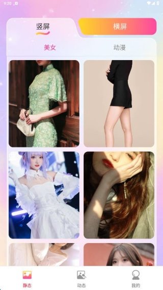 1、安装后进入,可以在静态壁纸分类中查看到竖屏、横屏等图片素材。