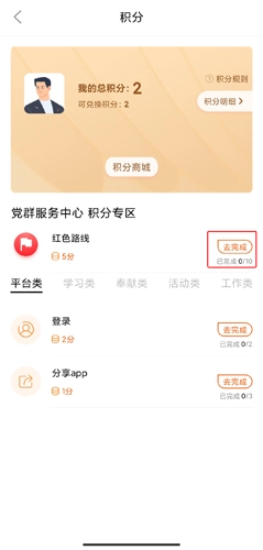 这里有很多收集积分的渠道,点击去完成按钮就可以。