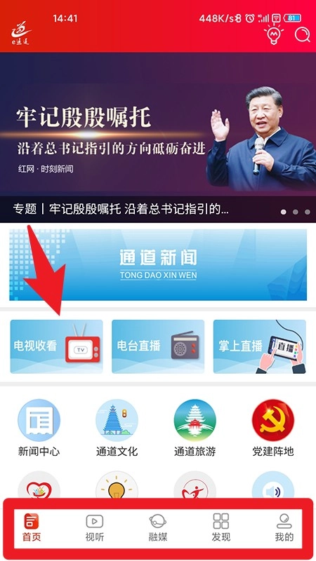 点击首页的图示进入主界面后,就能浏览新闻中心、通道文化、电视直播等各类服务内容。