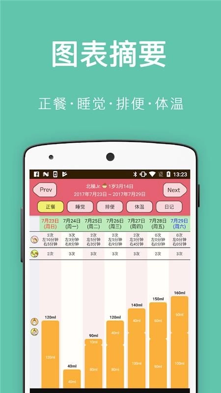 可以借助软件自动生成的图表,查看宝宝体重、身高、饮食、睡眠等关键指标的变化情况。