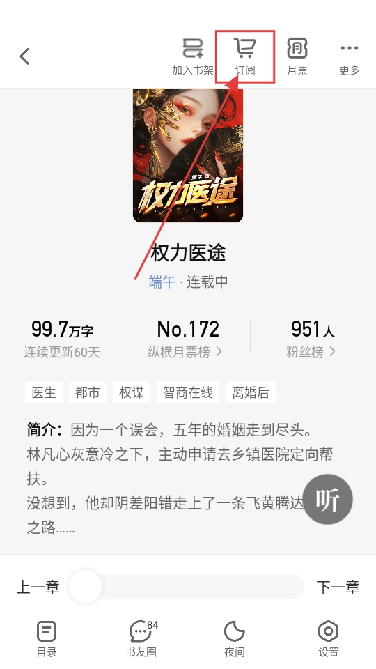 进入小说详情页面后,要是想订阅该小说,只需点击页面顶部的【订阅】按钮,即可完成订阅操作。