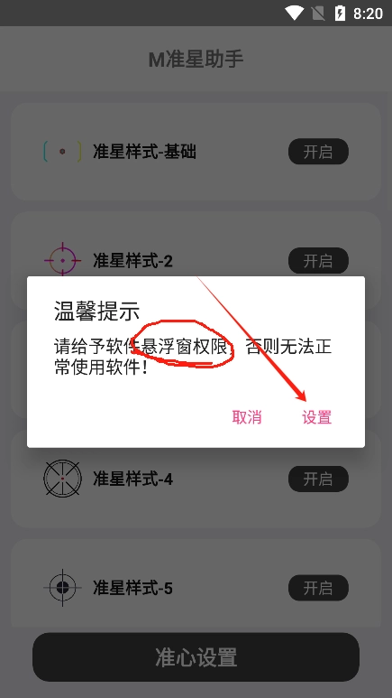 马上打开该应用,接着在设置里授权允许软件开启“悬浮窗”权限。