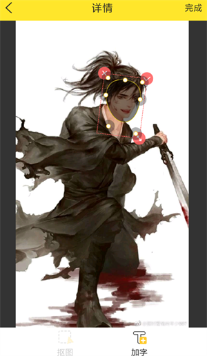 抠图结束后,点击右上角的“完成”按钮,接着在图片的空白处添加新照片来进行填充。