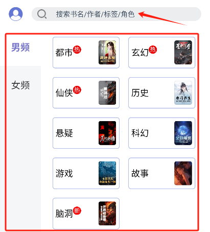 用户在主界面能够借助分类、搜索或者推荐功能,找到自己想阅读的小说。