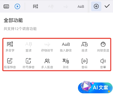 360度全方位合成文字语音、数字读法、语句韵律、节奏、语速等,丰富便捷的编辑功能,助力打造品质配音。