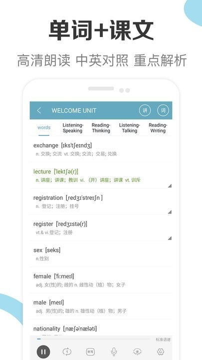【教材点读】新课标高中英语新版教材的单词与课文(同步翻译),配备高清原声配音,支持跟读与点读功能。