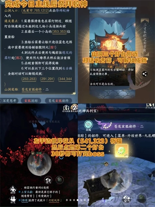 需留意部件二:在无更市坐标(765,1212)处,祭拜蛟神并进入山洞后