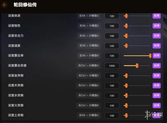 调整体质、悟性、攻击力、速度、暴击率、暴击伤害,以及五灵根的属性数值