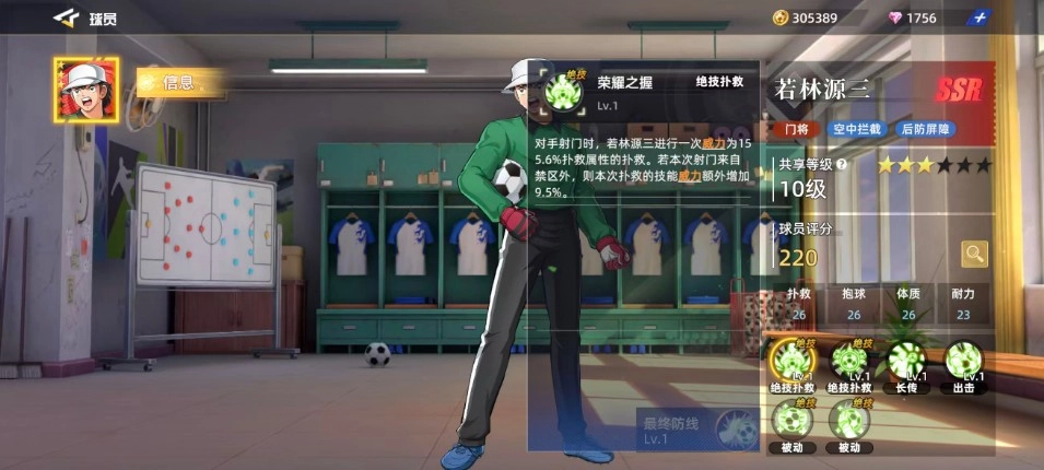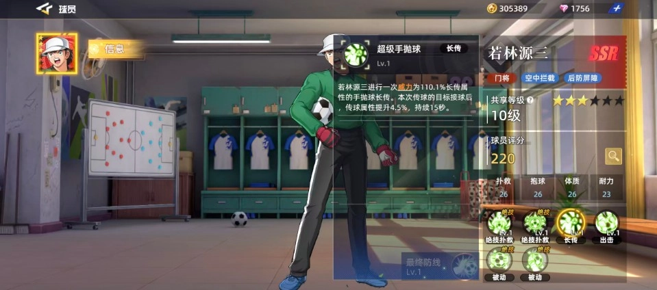 若林源三在游戏里是门将位置的球员,红卡门将如今相当稀缺,因此他在防守端能发挥出色的屏障作用。借助他的技能,玩家可以完成空中拦截动作。当球员评分达到220时,就能看出他的强度处于热门梯队。基础属性方面,抱球26、体质26、耐力23、补救26的数值,让他在这些动作上具备优势。而他的六维图中所有数值都超过20,目前没有任何属性低于20分,所以他无疑是一位备受青睐的门将选手。