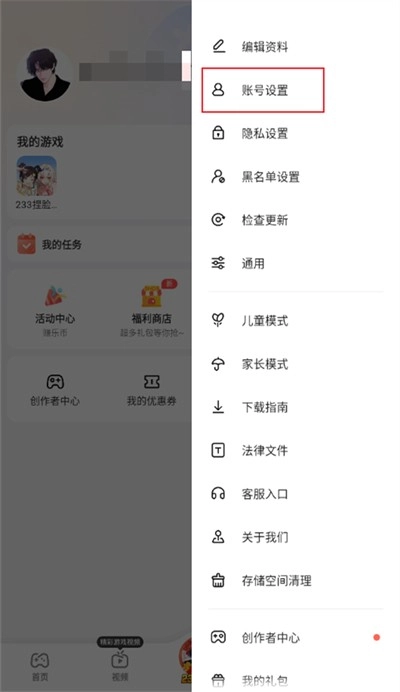 3、随后会弹出更多功能选项,在这些弹出的功能里找到【账号设置】这一选项;