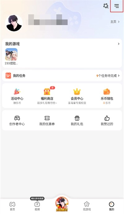 1、第一步是打开233乐园这款软件,进入软件界面之后,点击右下方的【我的】选项;