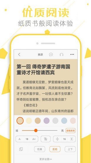 流畅舒适的阅读体验:采用最新的排版引擎,3D仿真翻页特效 。支持自动阅读,语音朗读 ;