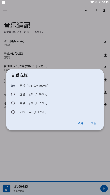 音乐适配是一款正版免费的音乐搜索工具,能一键快速搜索你感兴趣的歌曲资源。听歌时可自由选择音质,支持在线选取无损音质,还支持歌词适配歌曲。有需要的朋友快来试试吧!