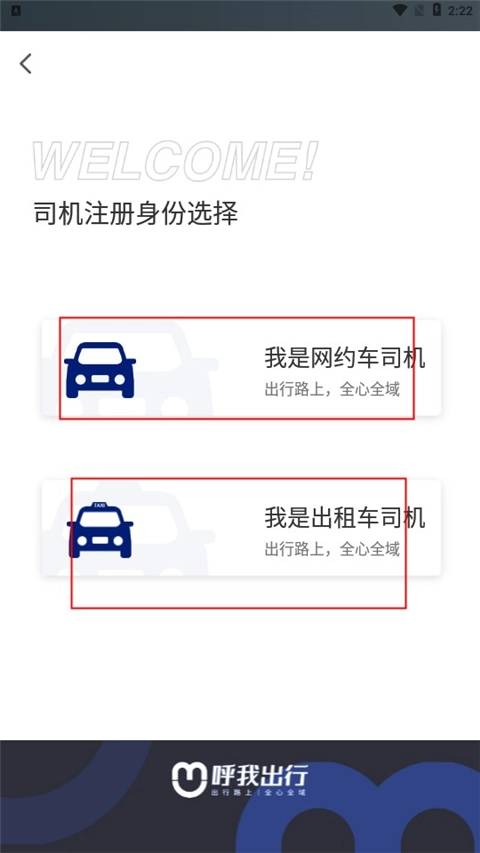在本站安装并打开软件进入界面后,用户可选择自己的身份是网约车司机还是出租车司机。