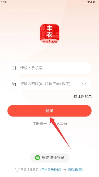 在登录界面填写手机号与登录密码,勾选同意相关条款后,点击登录按钮即可进入应用。