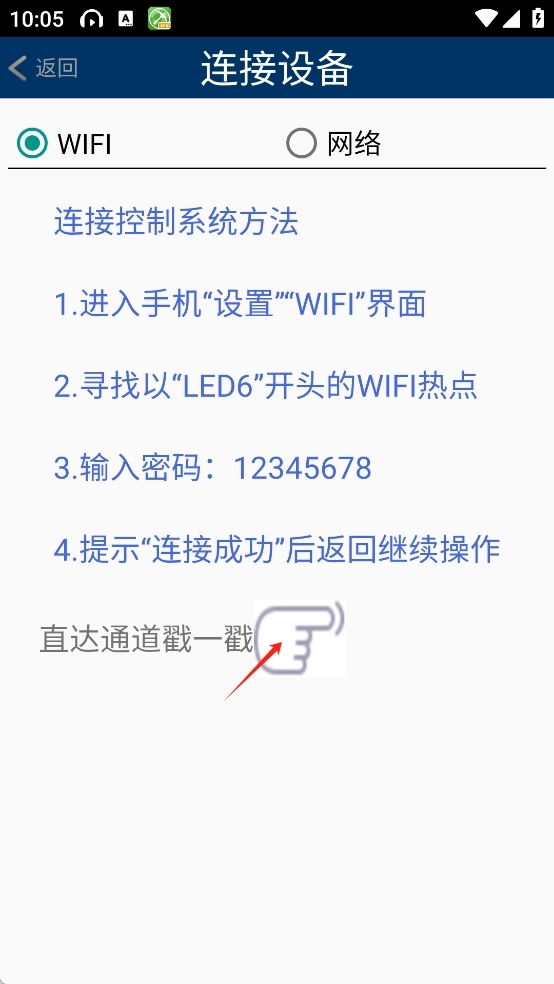 请点击以LED6W开头的WIFI热点,若需要输入密码,可使用控制卡的默认密码:12345678。