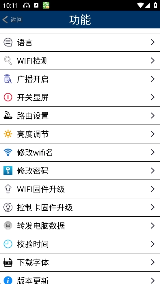 若您需要进行显示屏开关、亮度调节、WiFi名称修改、时间校验、字体设置等操作,可点击“更多”按钮,进入更多页面选择所需的功能选项。