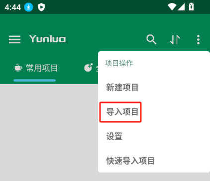 安装掌上编程应用后,打开该应用,点击界面右上角的【...】按钮,然后选择导入项目的选项。
