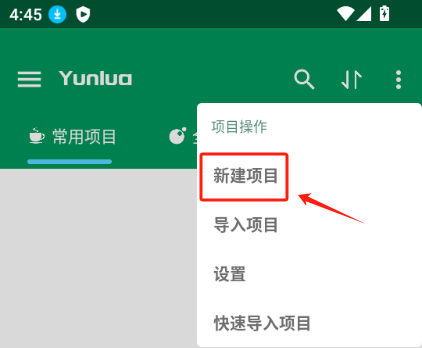 打开掌上编程应用,点击界面右上角的【...】按钮,然后选择“新建项目”选项。