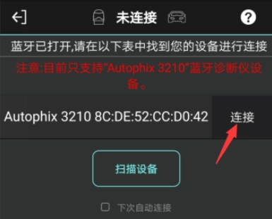 注意:当前仅兼容“Autophix 3210”蓝牙诊断仪设备。