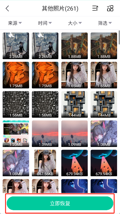 扫描结束后,挑选出想要恢复的微信照片,点击“立即回复”按钮就可以了。
