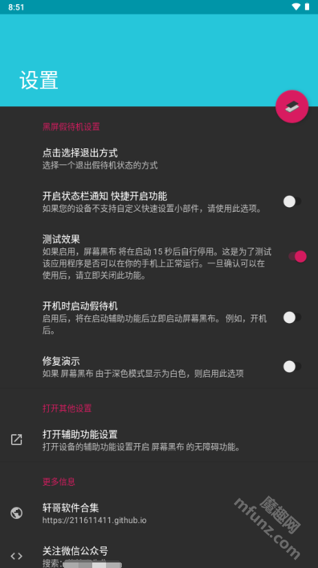 屏幕黑布功能可以在让应用程序正常运行的同时关闭屏幕,这对那些需要长时间让手机屏幕保持常亮的用户而言十分实用。