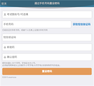 输入你的账号和手机号,获取验证码即可更改你的密码