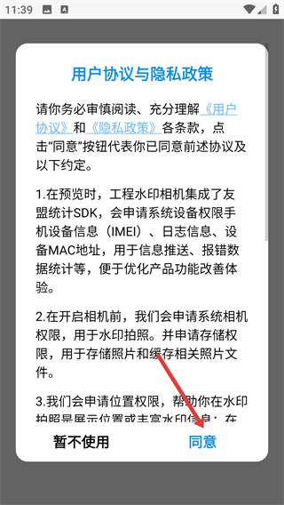 在仔细阅读【用户协议】与【隐私政策】的条款内容,清楚知晓权限申请的相关说明后,请点击弹窗里的【同意】按钮。