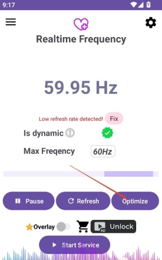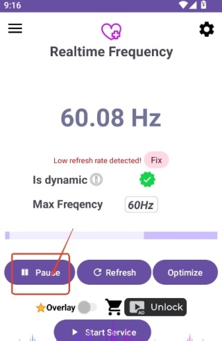 3、点击开启图标,即可为大家检测屏幕刷新率。