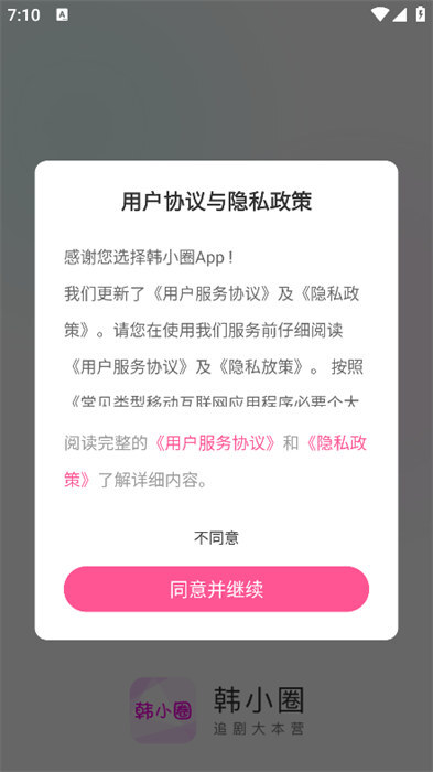 打开软件后,请先阅读隐私政策与用户协议,点击同意即可进入软件使用界面。