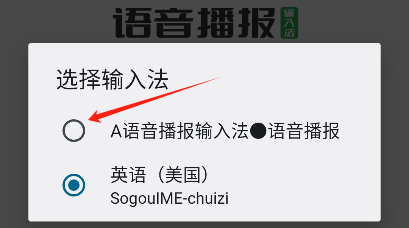 3、接着进入设置界面开启该输入法,之后返回并点击“切换到语音播报输入法”选项。