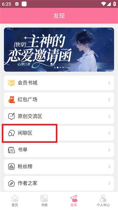 2、在发现界面里能找到【闲聊区】,点击即可进入该功能界面。