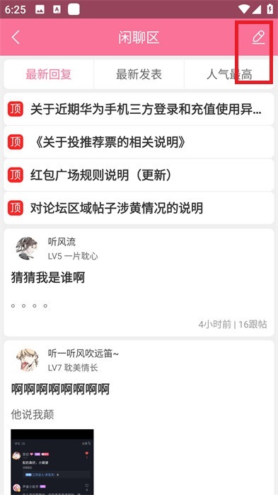 3、在该功能界面里,用户可点击右上角的【铅笔】图标,进入发布帖子的页面;